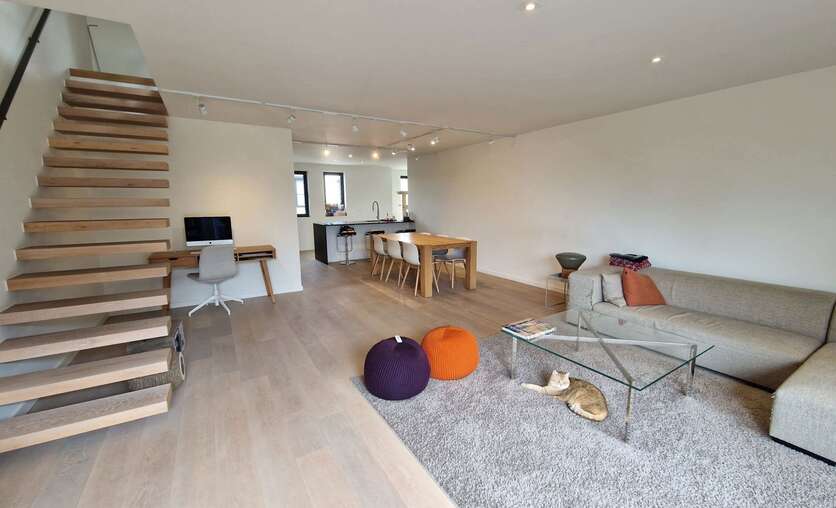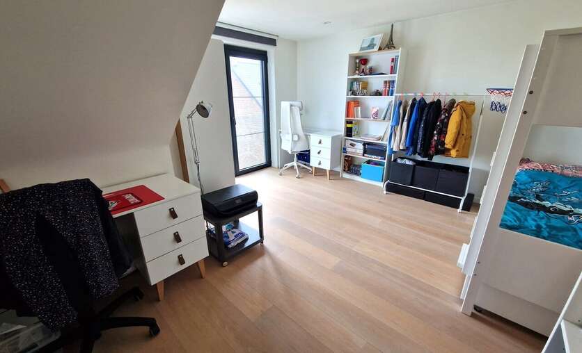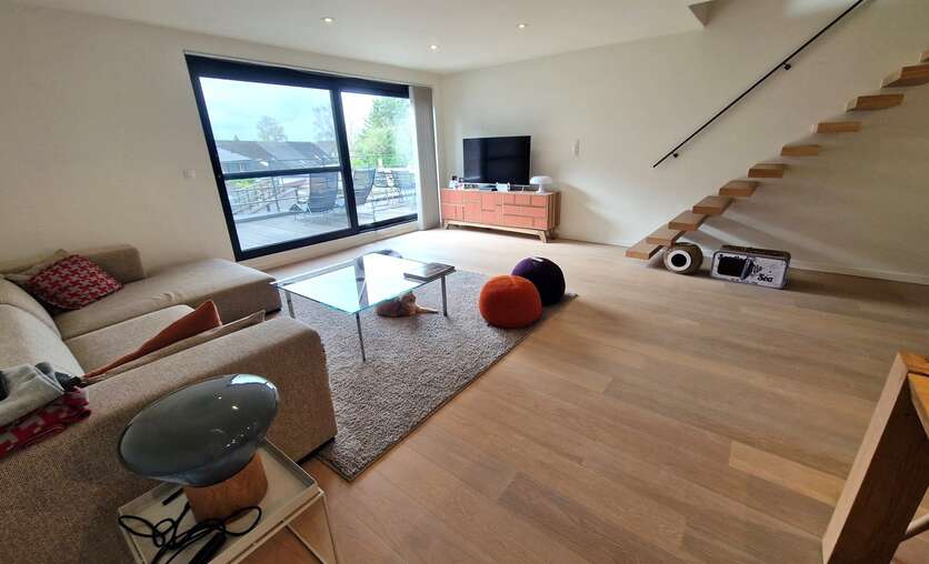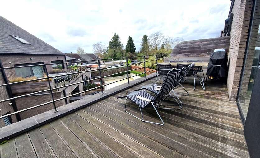 Ontdek dit prachtige recente duplexappartement op een boogscheut van de Perkse kerktoren, met een royaal oppervlak van 169 m². Met twee ruime slaapkamers, een bureau en twee autostaanplaatsen is er ruimte voor het hele gezin. Geniet van hoogwaardige afwerking, inclusief natuursteen en eiken parket, en luxe Miele-apparatuur in de keuken. Ontspan op het ruime en zonnige terras, perfect op het zuiden gericht én voorzien van zonneluifel. Provisie van €120/maand met jaarlijkse afrekening. Interesse? Mail naar info@immovervloet.be.